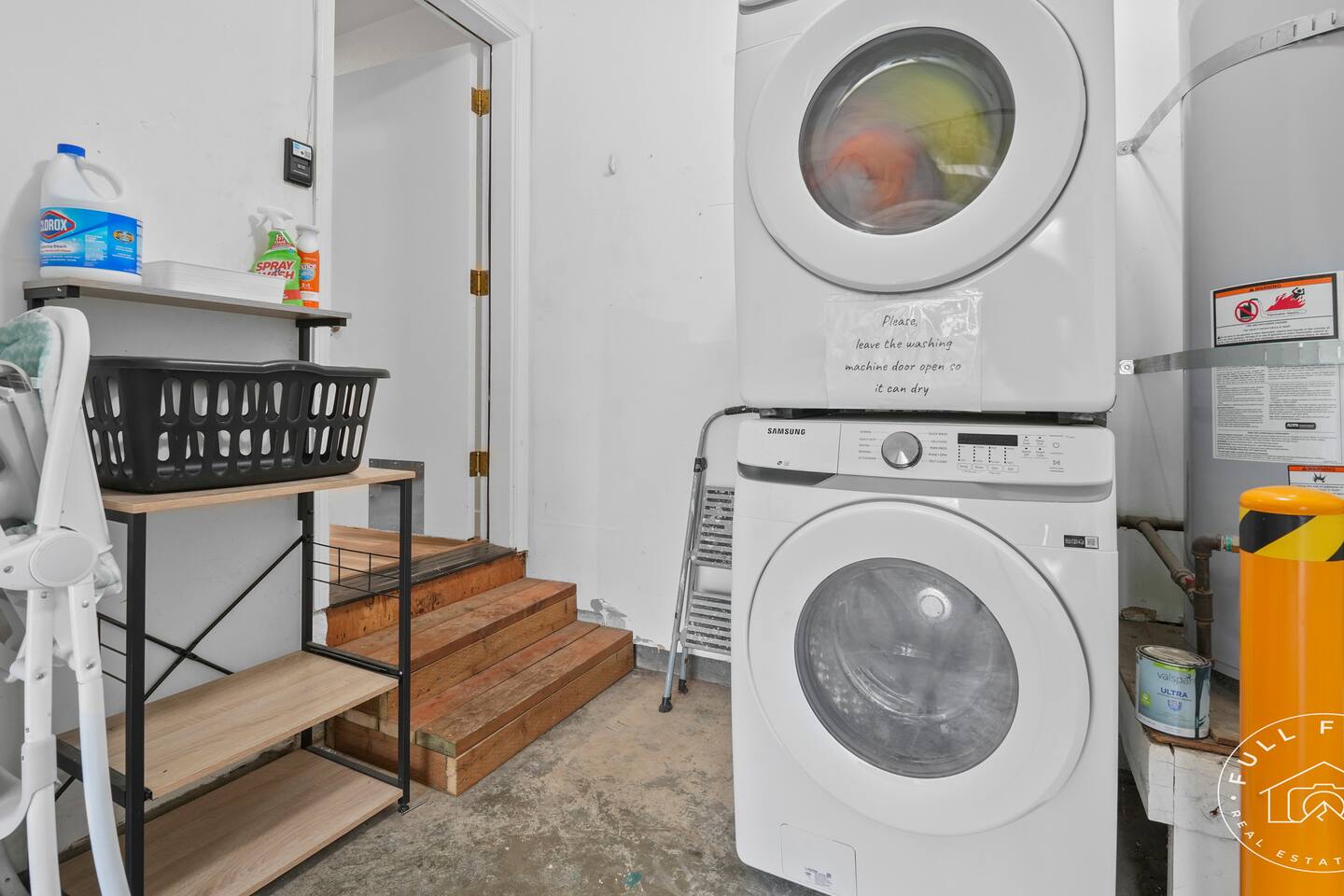 The unit is part of a duplex and the backyard does not have a separation fence between the units (yet). The neighbor does have a friendly dog, just so you're aware when you step outside he might greet you but he's not left outside alone.